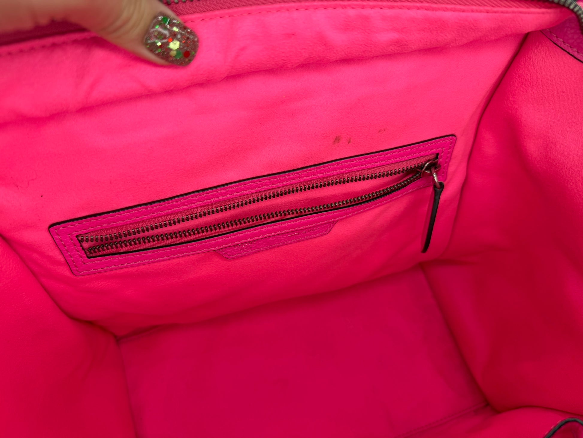 This pre-owned CELINE Luggage Mini showcases authentic vintage character with faded coloring and visible signs of wear consistent with its history. The interior displays minor staining. Includes the original organizer. As an all sales final piece, we recommend reviewing all product images carefully to assess condition before purchase. A timeless investment piece for the discerning collector.
