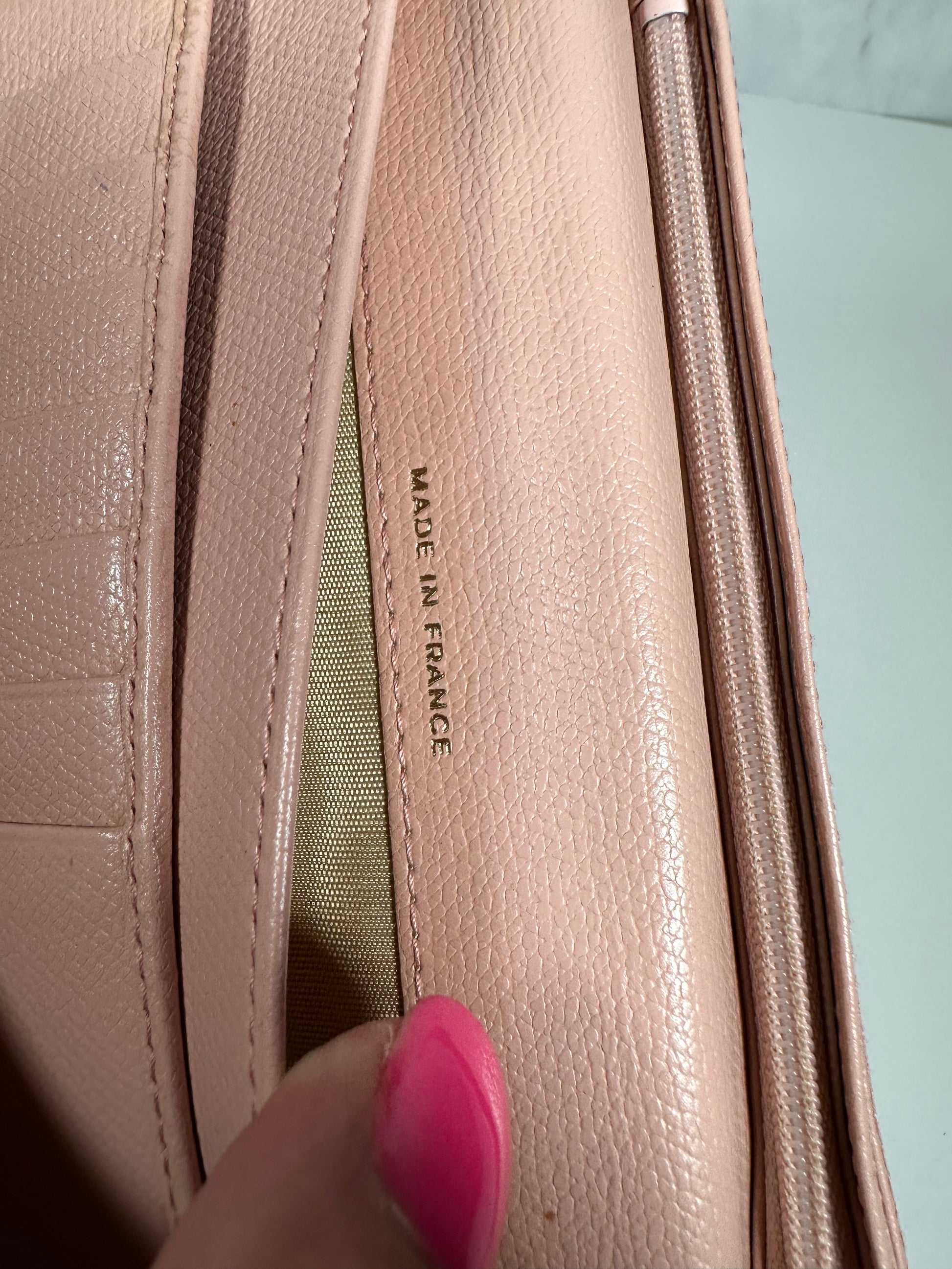 Expertly crafted with CHANEL's signature attention to detail, the Coco Button Wallet is a timeless accessory. The front and back show signs of wear, while the inside has a slight discoloration mark. Please refer to the images for a thorough assessment. All sales are final.