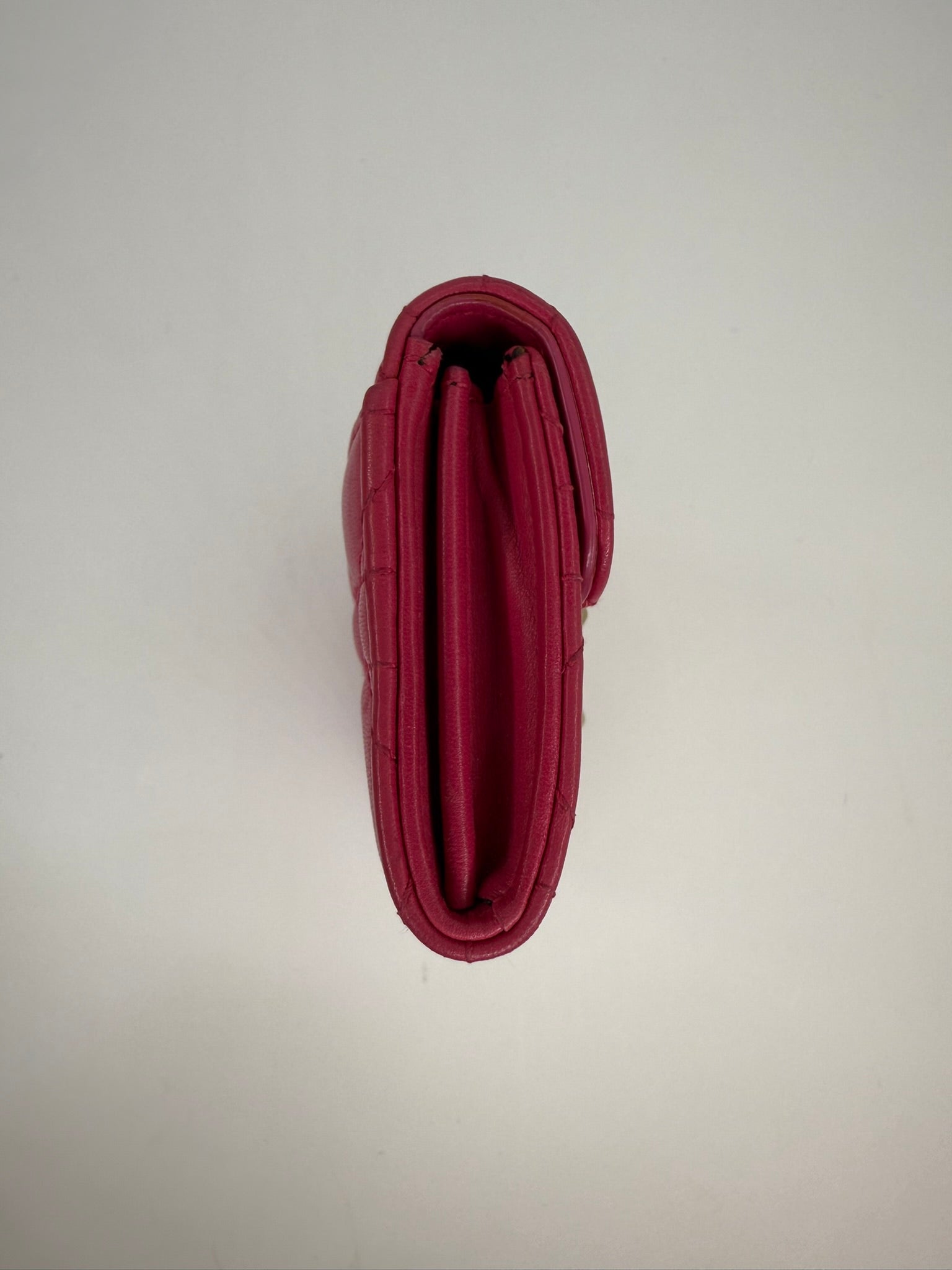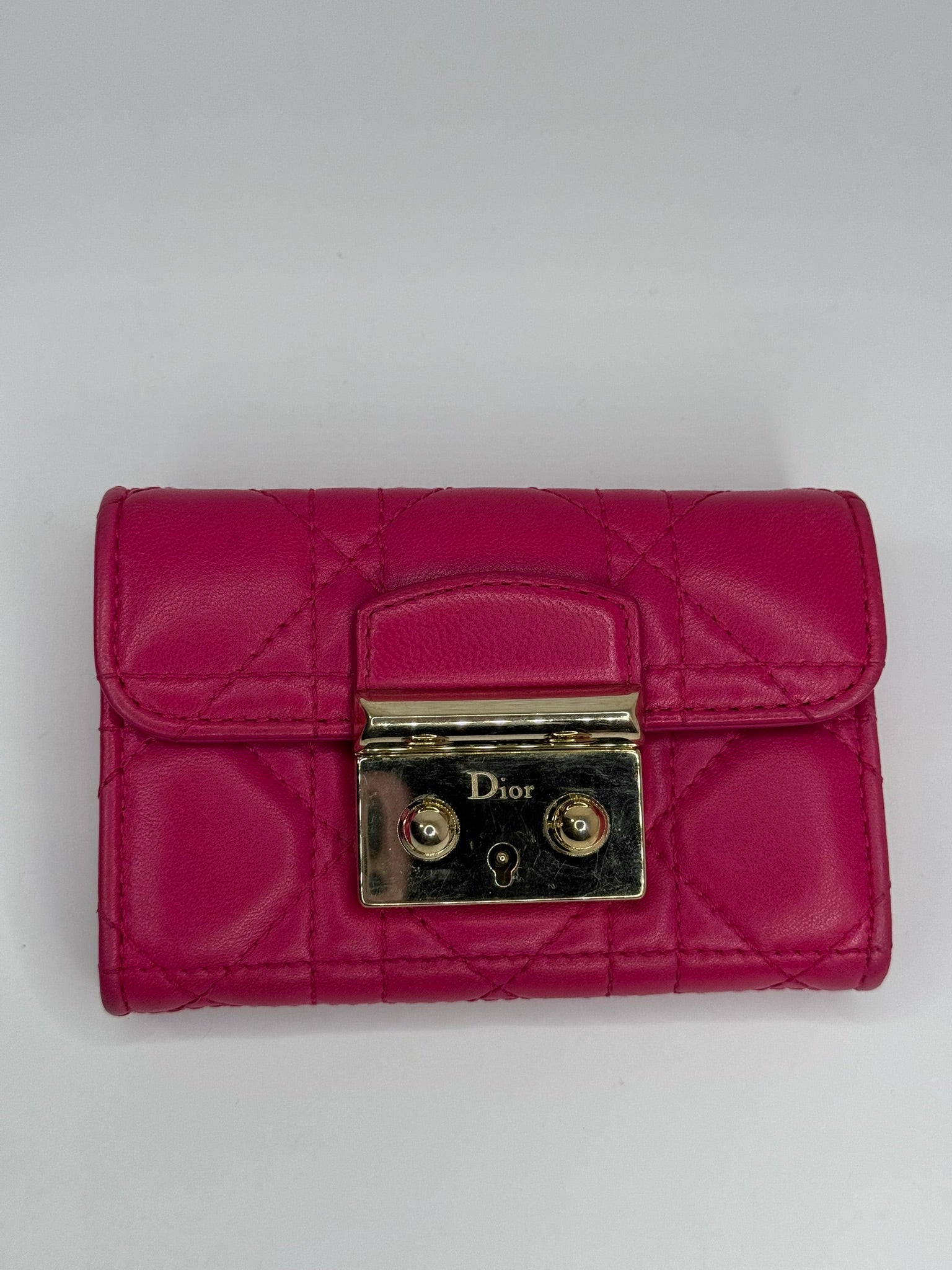 This DIOR Mini Card Holder in Fushia is the perfect accessory for your everyday essentials. Its cute and compact design makes it easy to carry around, while the durable material ensures long-lasting use. Despite slight rubbing on the corners, this wallet is in very good condition. Review all images for a closer look and enjoy the convenience and style this product has to offer. All sales are final.