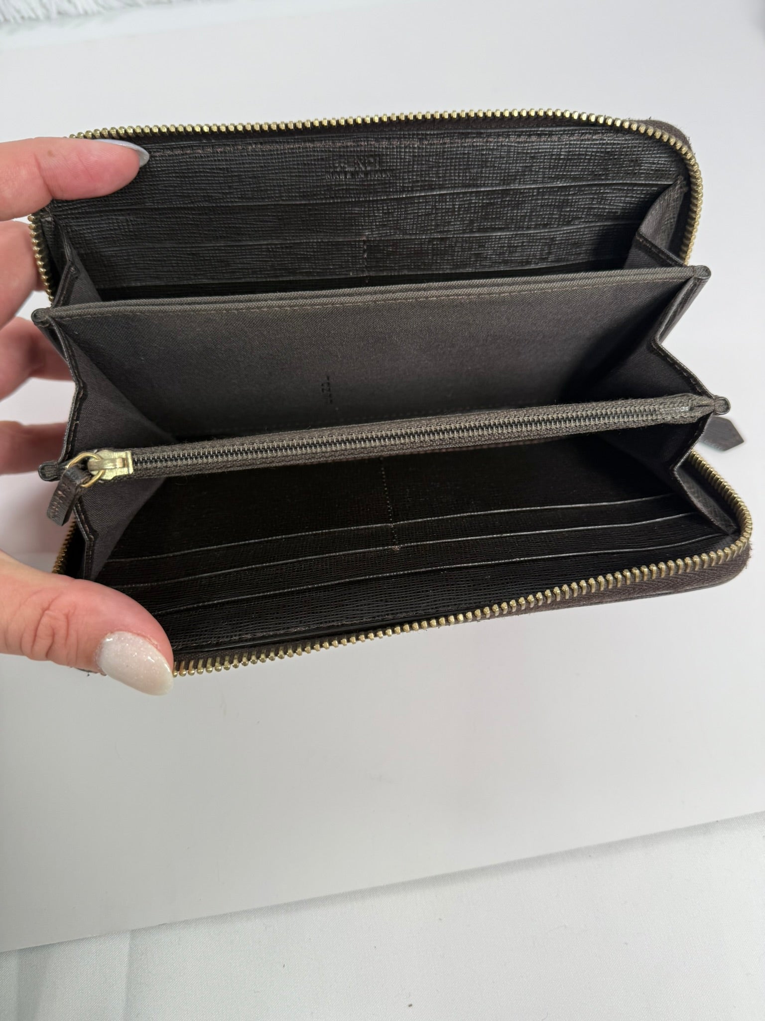 As an expert in the fashion industry, I am proud to present the FENDI Zip Around Wallet. This stunning wallet boasts a sleek design and is in excellent condition, as seen in the review images. With its timeless appeal and practical functionality, this wallet is a must-have for any fashion-forward individual. All sales are final, so don't miss out on this gorgeous piece.