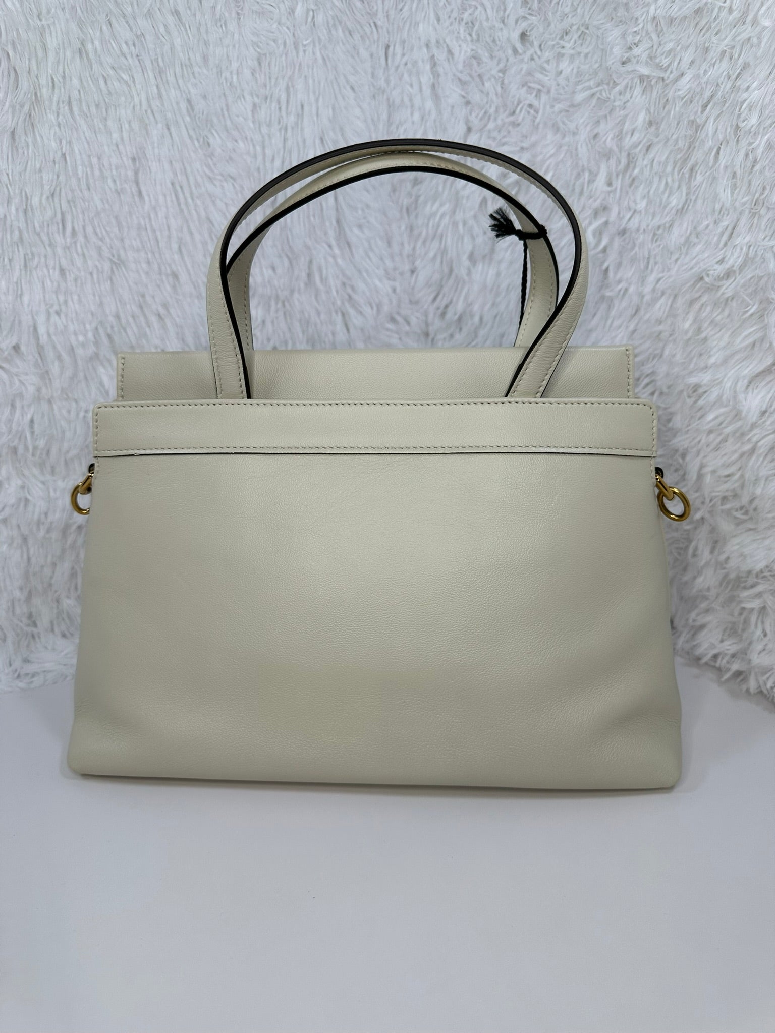 This GUCCI Calfskin Interlocking G Top Handle Bag is the perfect addition to any wardrobe. New with tags and a dust bag, this bag features stunning two tone hardware and premium calfskin leather. While there may be slight handle indentations, the overall look and quality of this bag cannot be beat. Don't miss out on this final sale item.