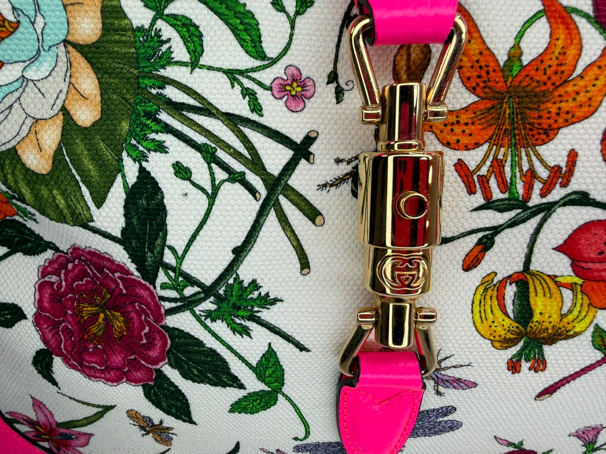 This pre-loved GUCCI Jackie Flora Medium Hobo showcases excellent condition with minimal signs of wear, making it an exceptional find for the discerning collector. The iconic silhouette retains its refined elegance and structural integrity. Please review all product images carefully, as this is a final sale item. Authentic GUCCI craftsmanship and timeless design ensure enduring appeal and investment value.