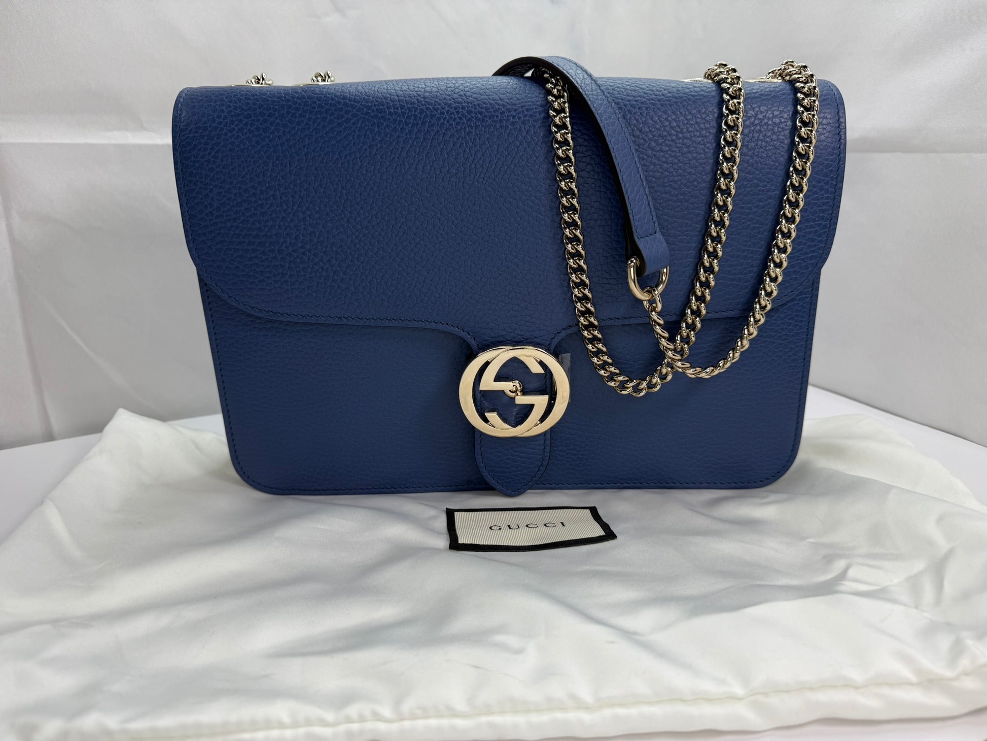 This Gucci Medium Dollar Interlocking G Shoulder Bag is in gorgeous, like-new condition with no major flaws. Crafted with impeccable detail, it offers timeless elegance and versatile style. Included is the original dust bag for safe storage, ensuring your investment remains pristine. Perfect for elevating any outfit with a touch of luxury.