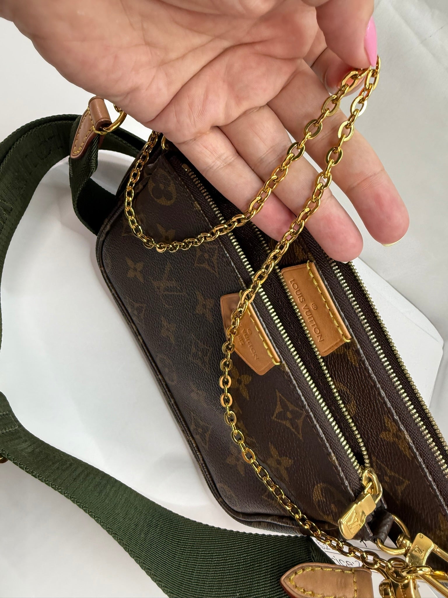 This LOUIS VUITTON Multi Pochette Accessories Monogram is in pristine condition, making it a gorgeous accessory for any outfit. With a retail value of over $2499 on the pre-loved market, this multi-use bag is a must-have for any fashion expert.