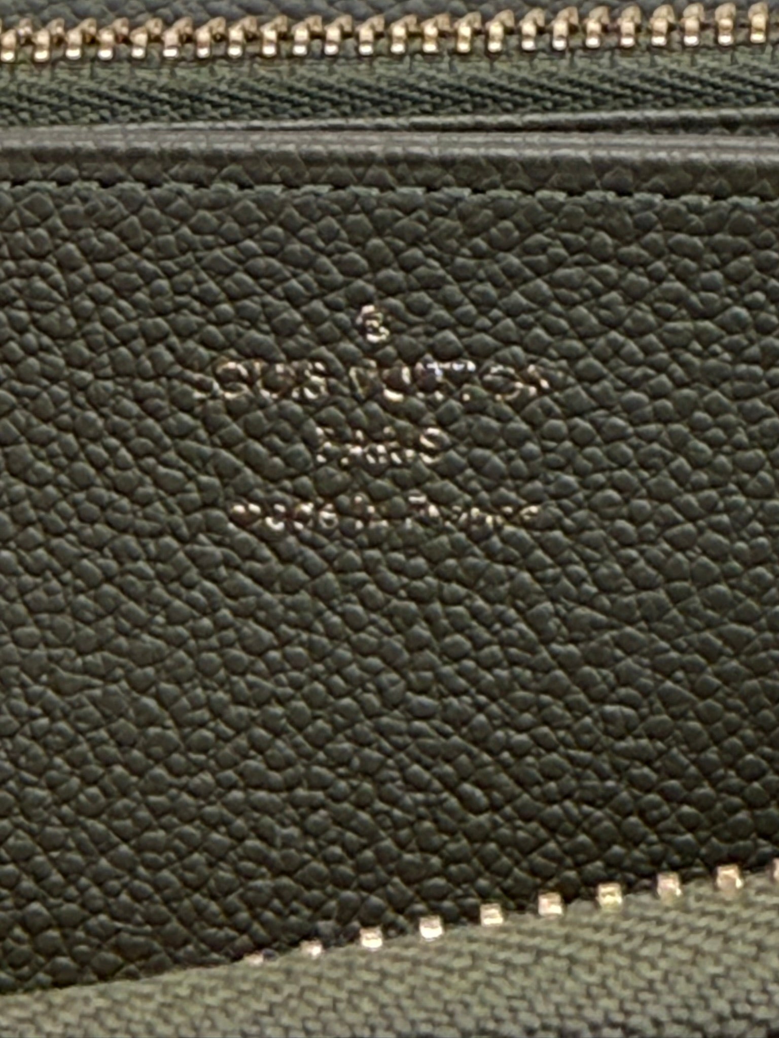 Elevate your accessory game with the LOUIS VUITTON Olive and Pink Whipstitch Monogram Empreinte Leather Wallet. The stunning contrast of green and pink stitching adds a touch of sophistication to any outfit. With slight wear to the bottom edge, this collector's piece is still in very good condition. Expertly crafted and versatile, this wallet is a must-have for any fashion lover.