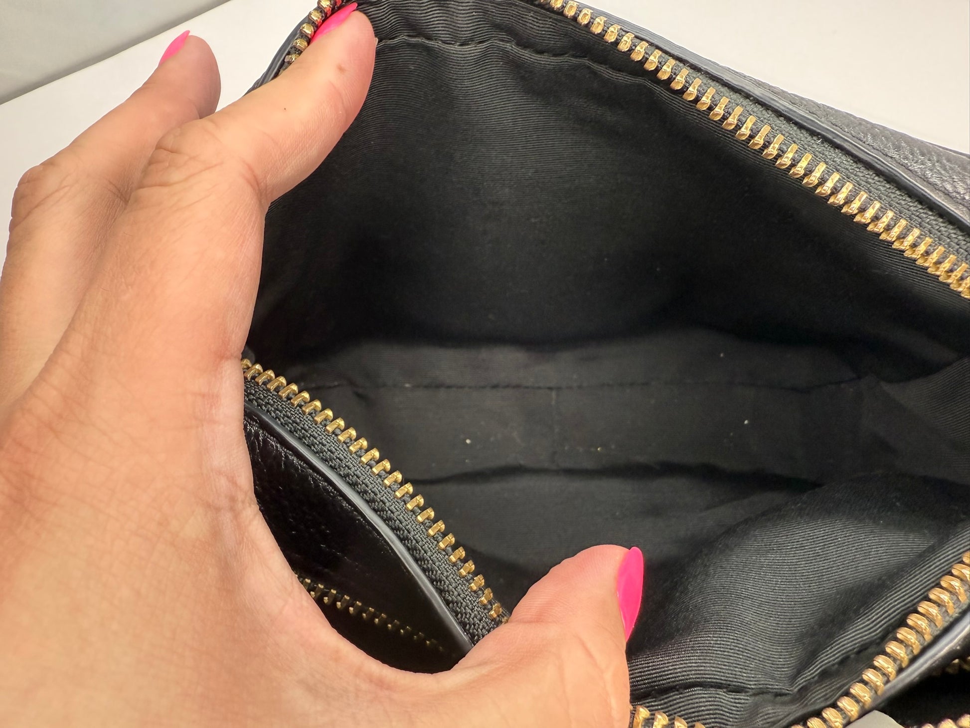 This Marc Jacobs The Softshot 21 Leather Crossbody shows slight signs of wear, reflecting its quality and character. It includes a brand-new aftermarket Marc Jacobs strap, offering both style and durability. Perfect for those seeking a sophisticated accessory with a refreshed touch.