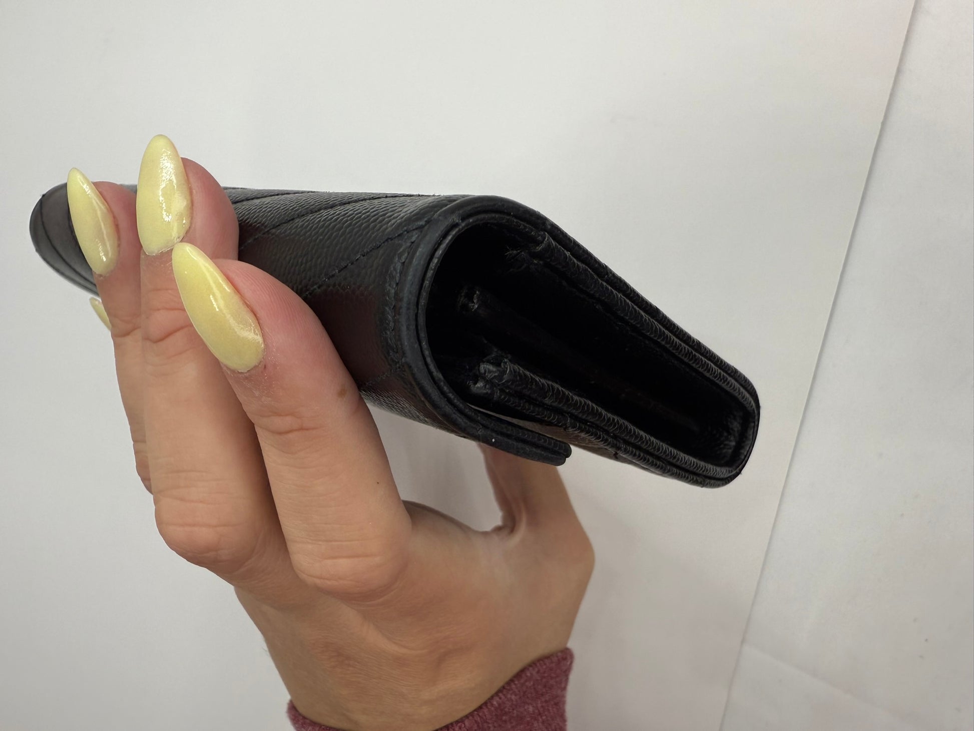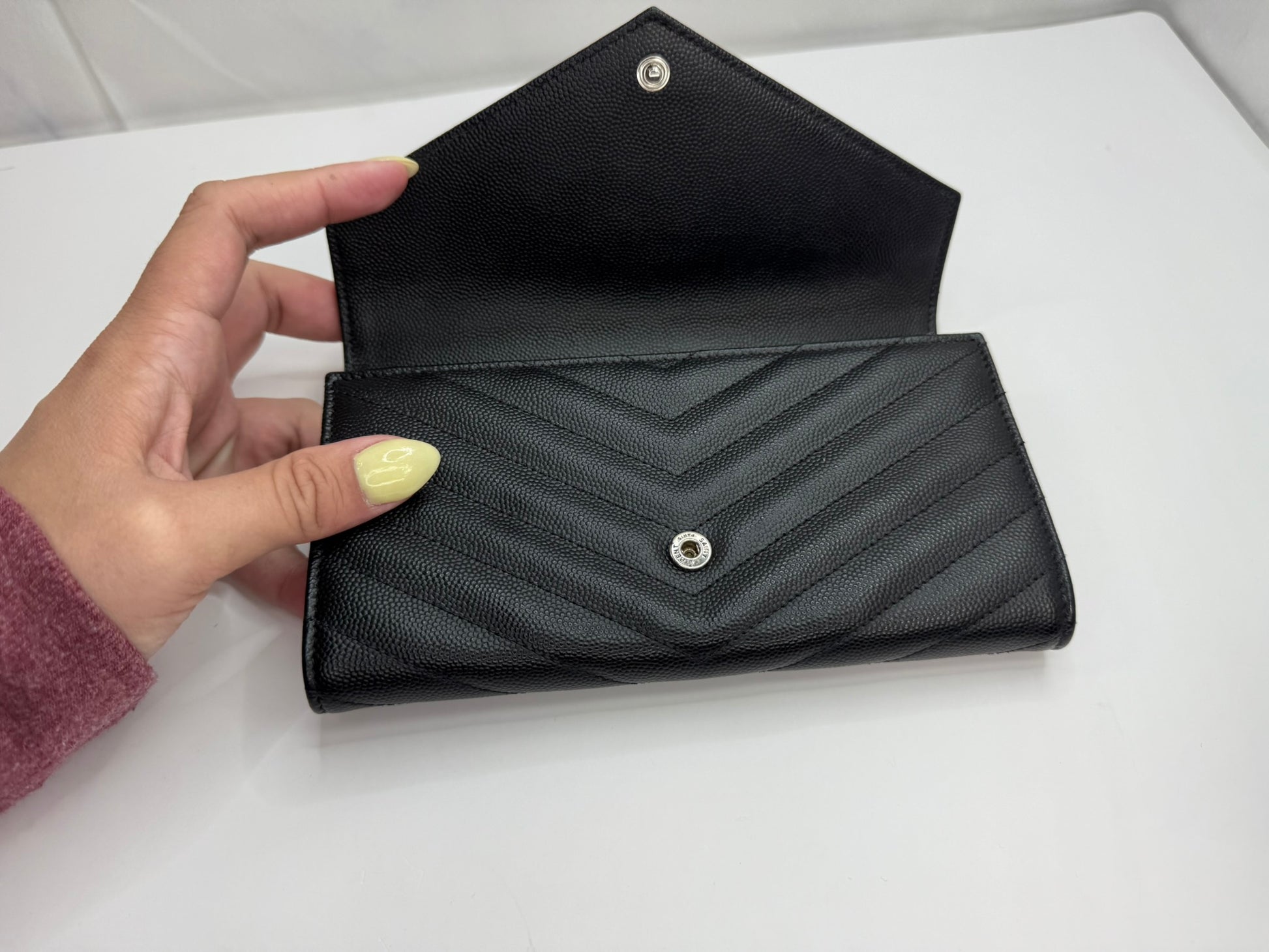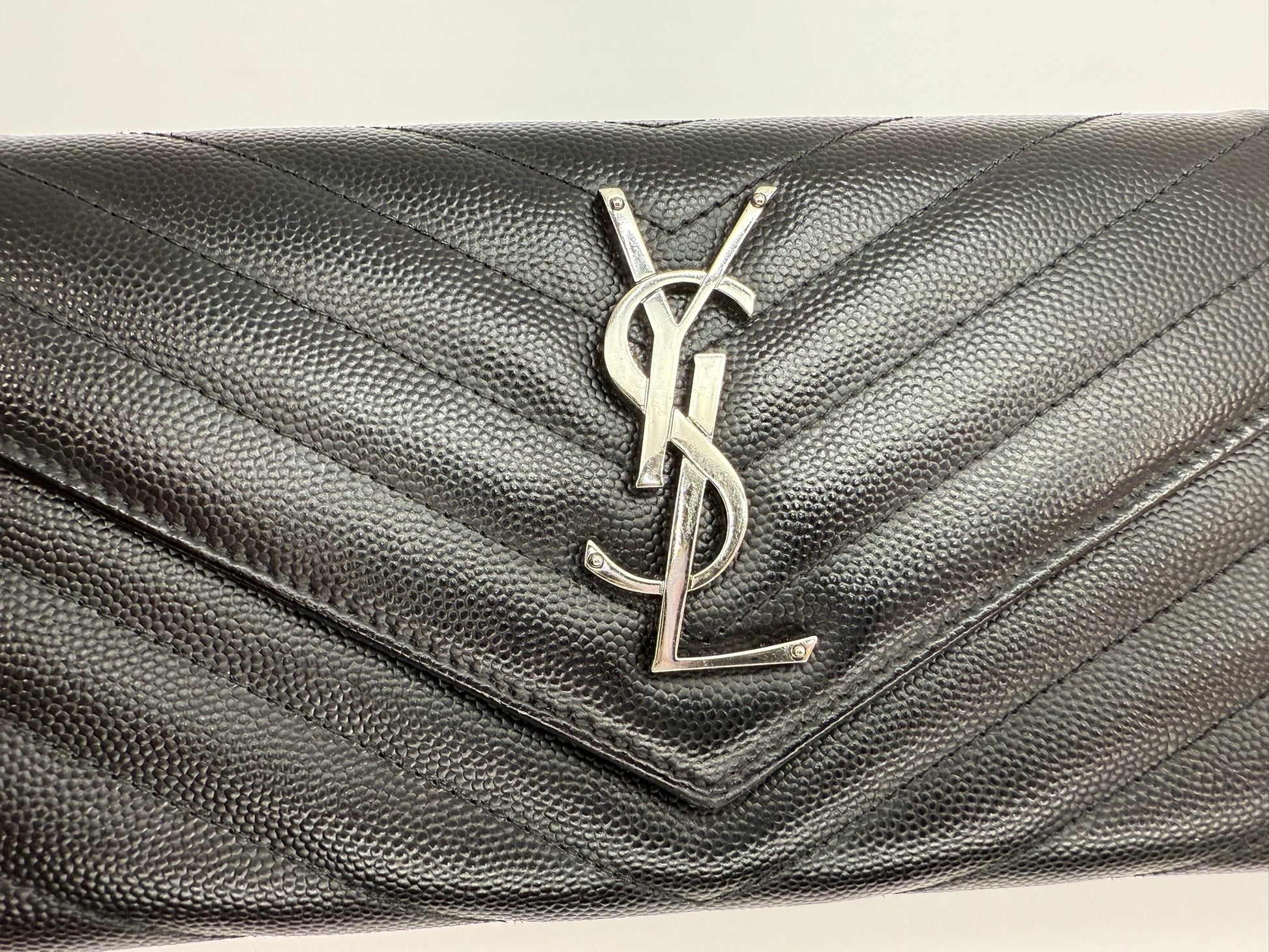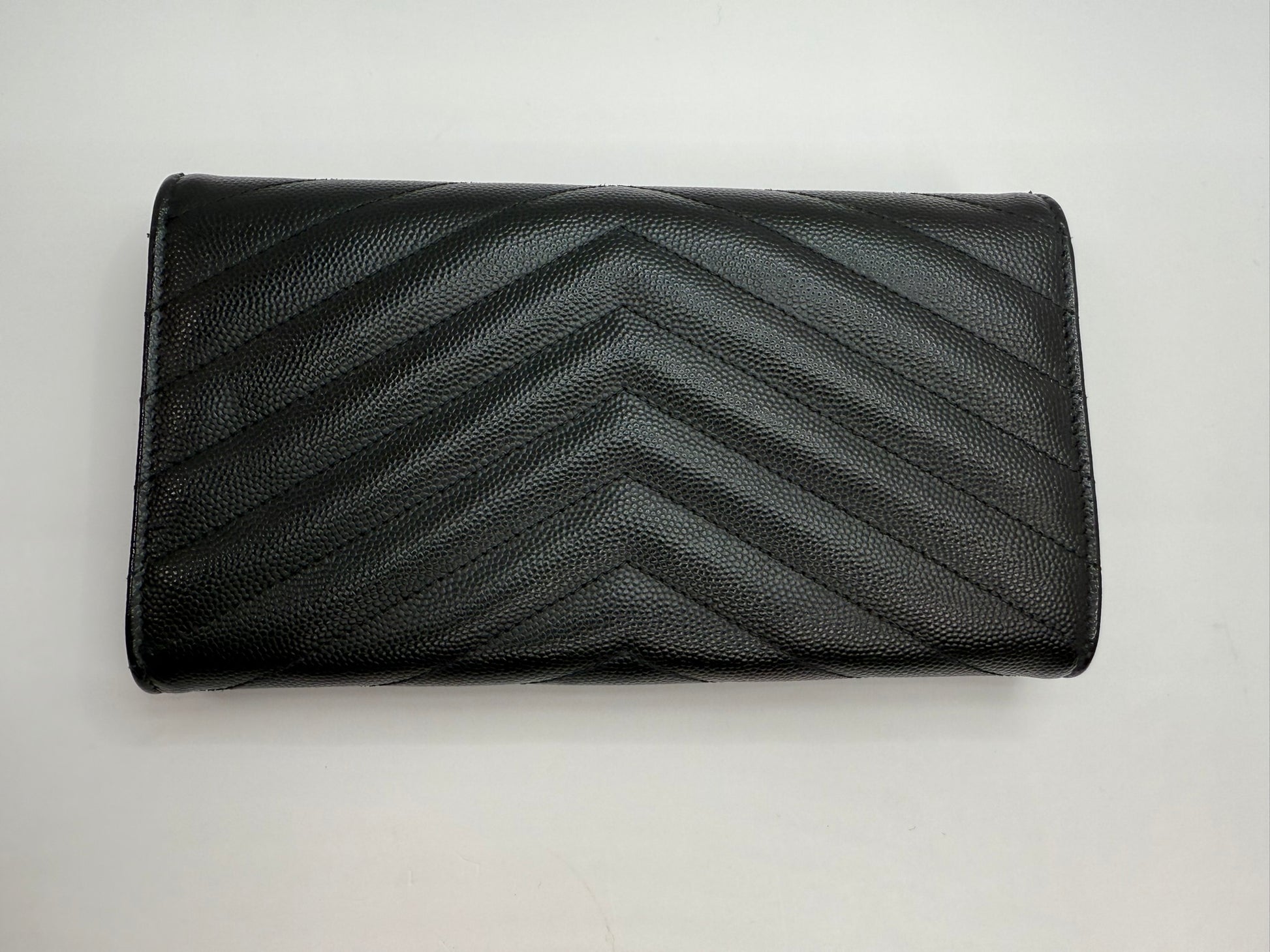 SAINT LAURENT Grain De Poudre Matelasse Chevron Monogram Flap Wallet Black